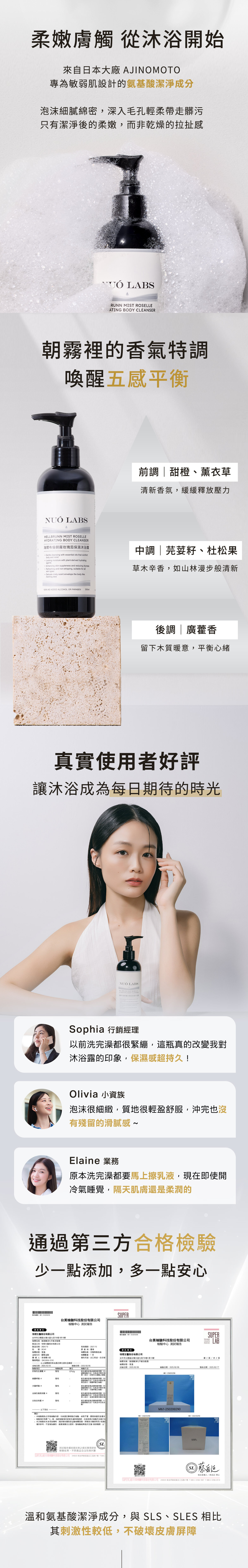 72hr 保濕舒適度測試通過,泡沫細緻、洗後柔嫩不緊繃